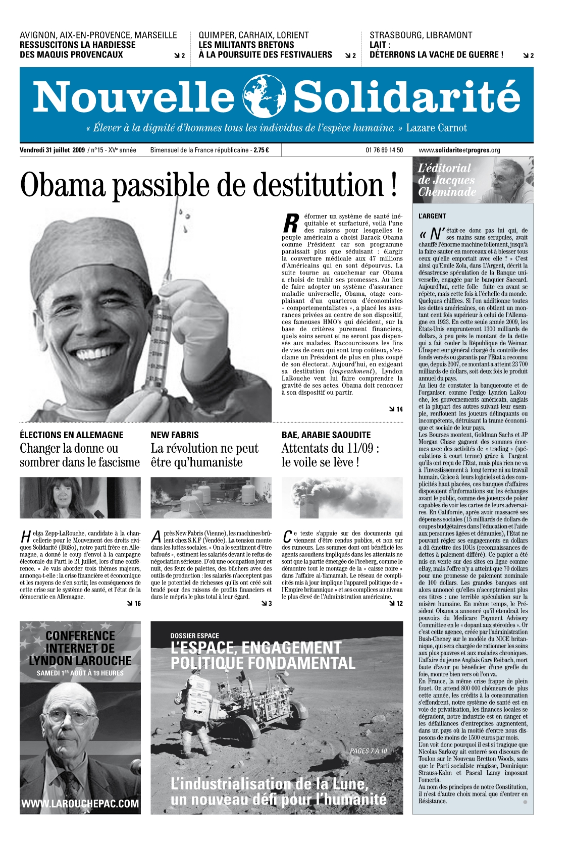 Accueil > Nouvelle Solidarité > Nouvelle Solidarité n°15/2009