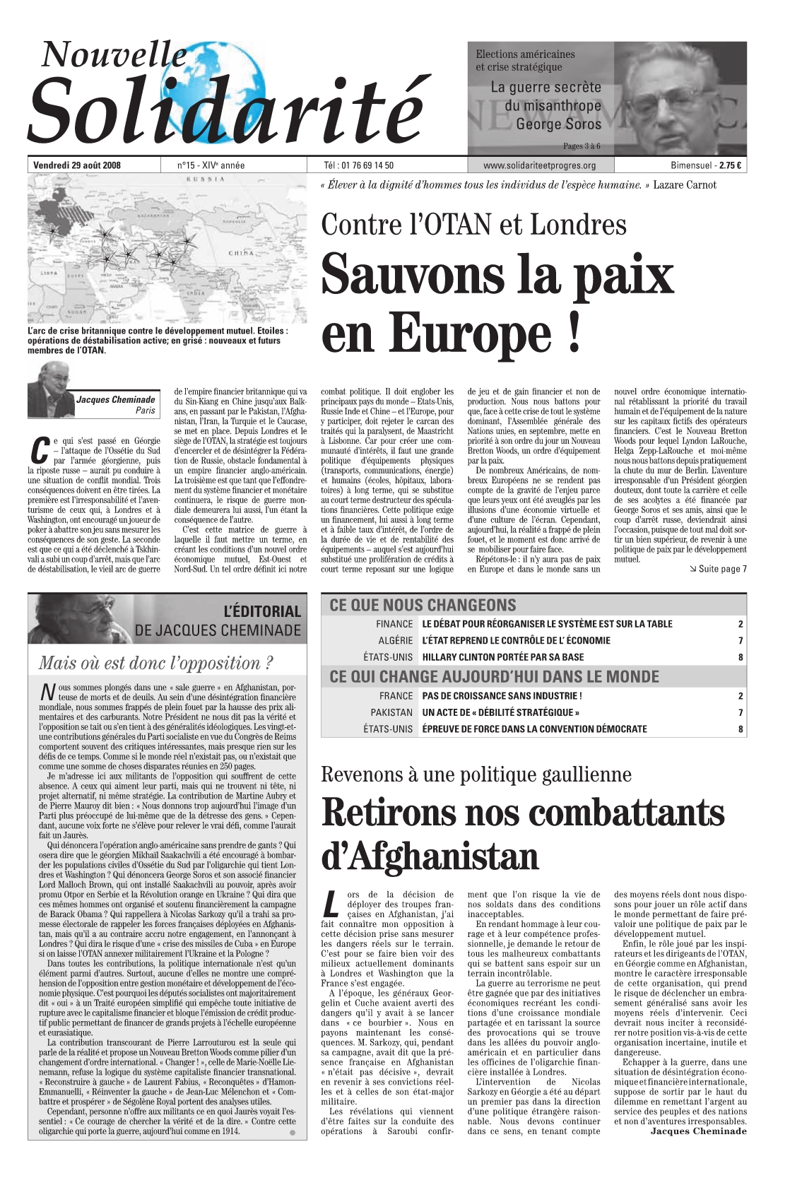 Accueil > Nouvelle Solidarité > Nouvelle Solidarité n°16/2008