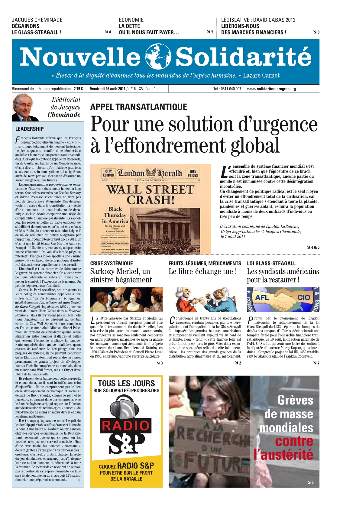 Accueil > Nouvelle Solidarité > Nouvelle Solidarité n°16/2011