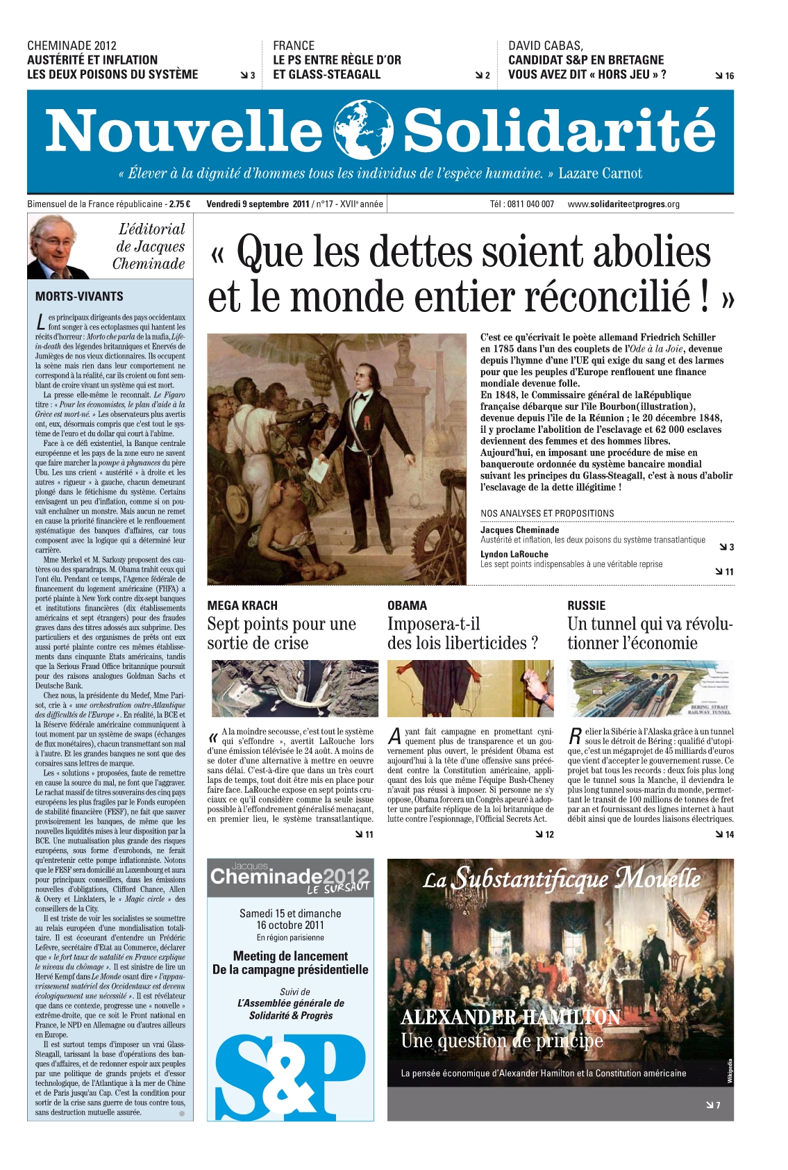 Accueil > Nouvelle Solidarité > Nouvelle Solidarité n°17/2011