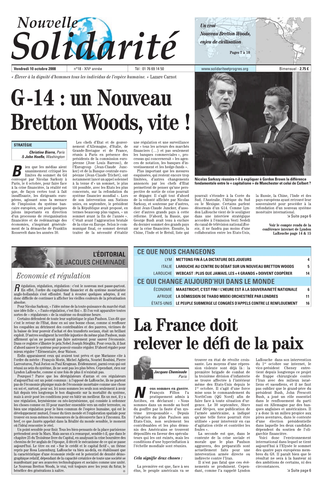 Accueil > Nouvelle Solidarité > Nouvelle Solidarité n°18/2008