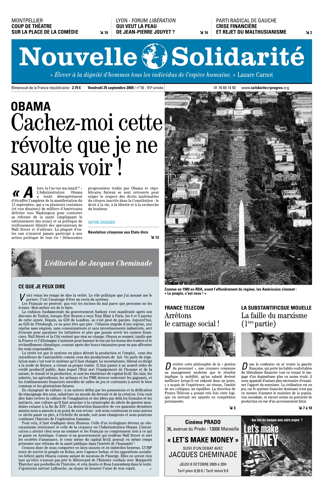 Accueil > Nouvelle Solidarité > Nouvelle Solidarité n°18/2009