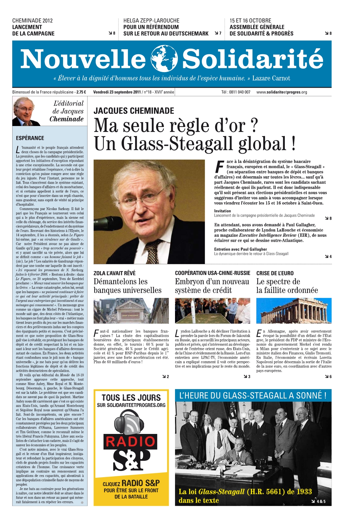 Accueil > Nouvelle Solidarité > Nouvelle Solidarité n°18/2011