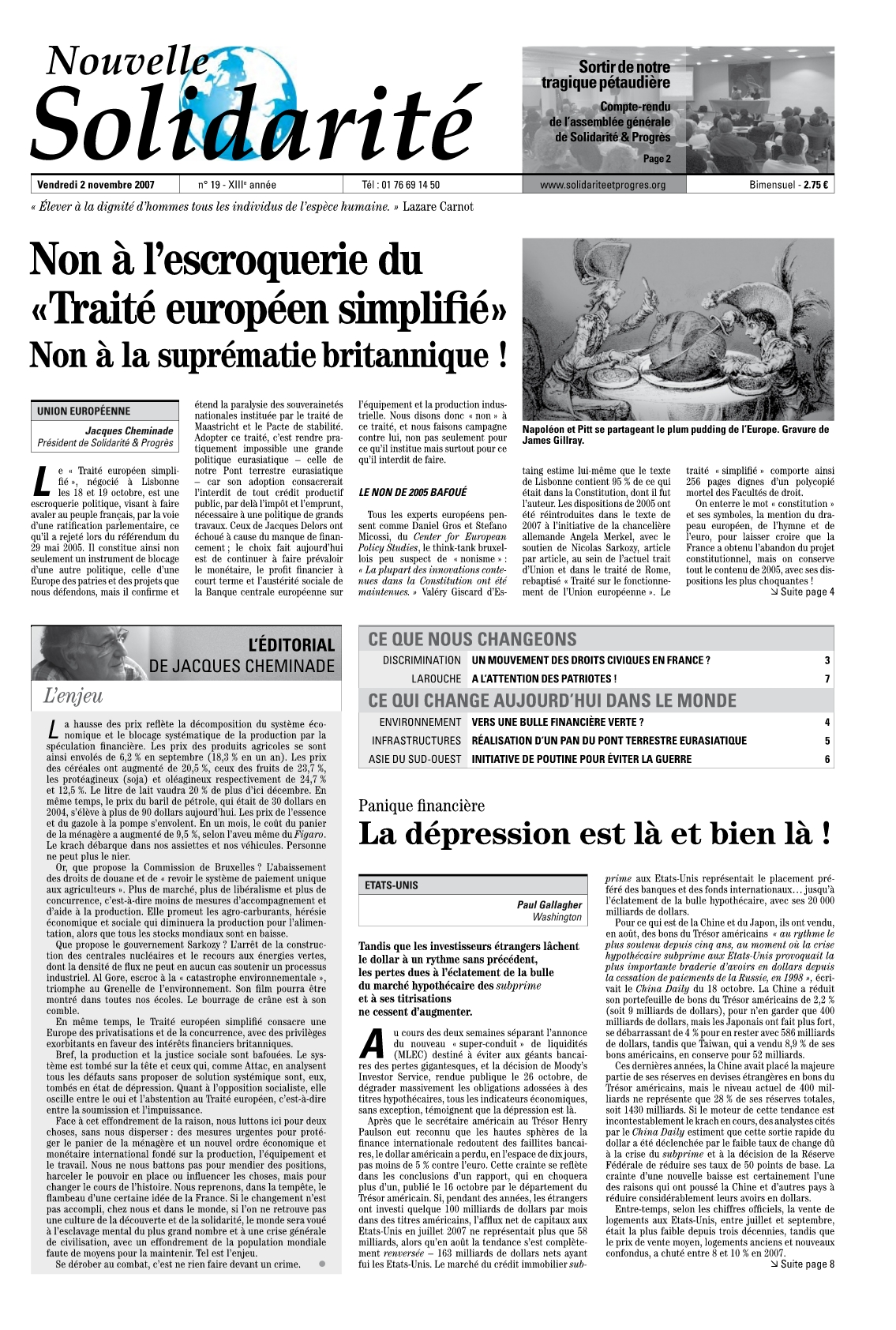 Accueil > Nouvelle Solidarité > Nouvelle Solidarité n°19/2007