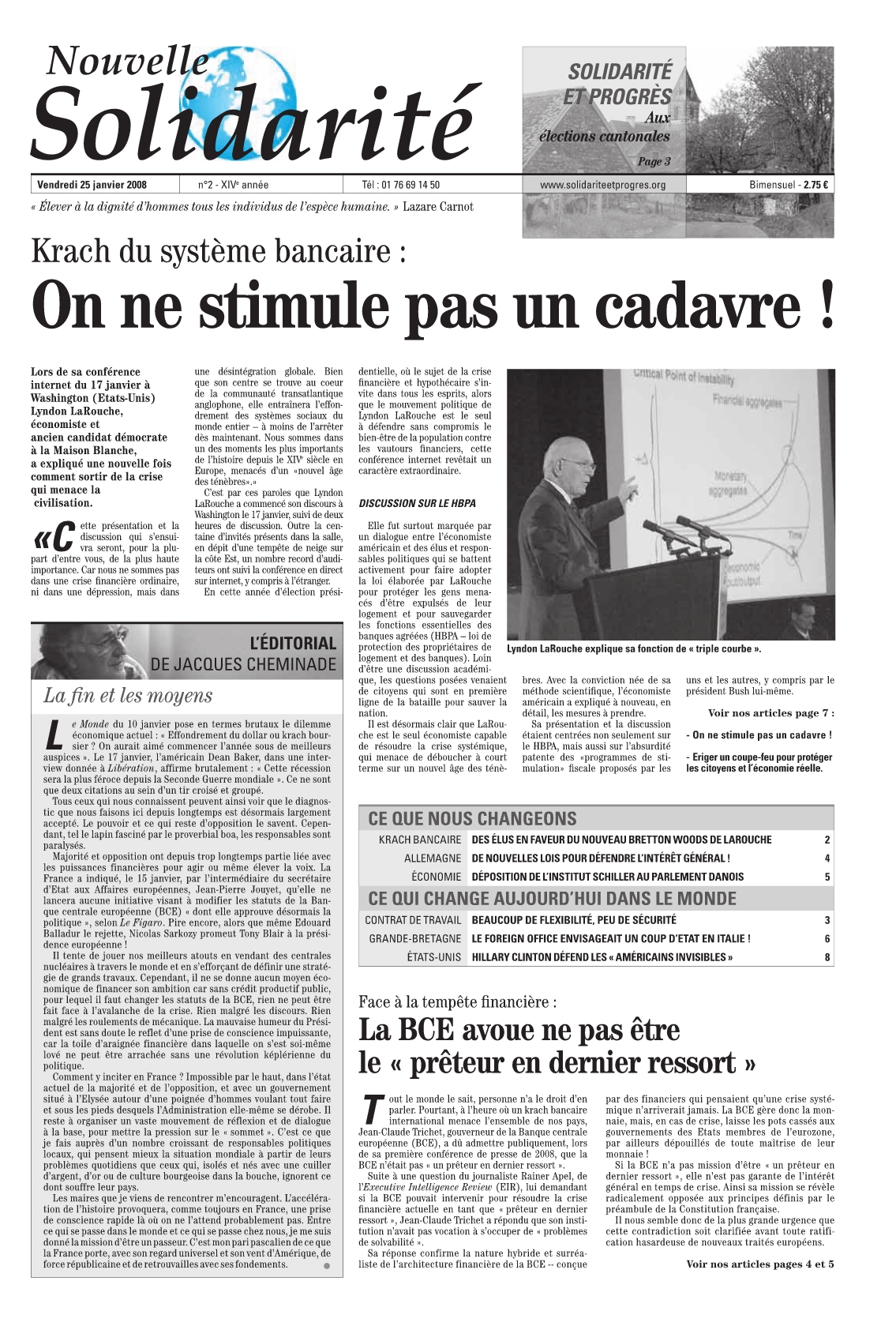 Accueil > Nouvelle Solidarité > Nouvelle Solidarité n°2/2008