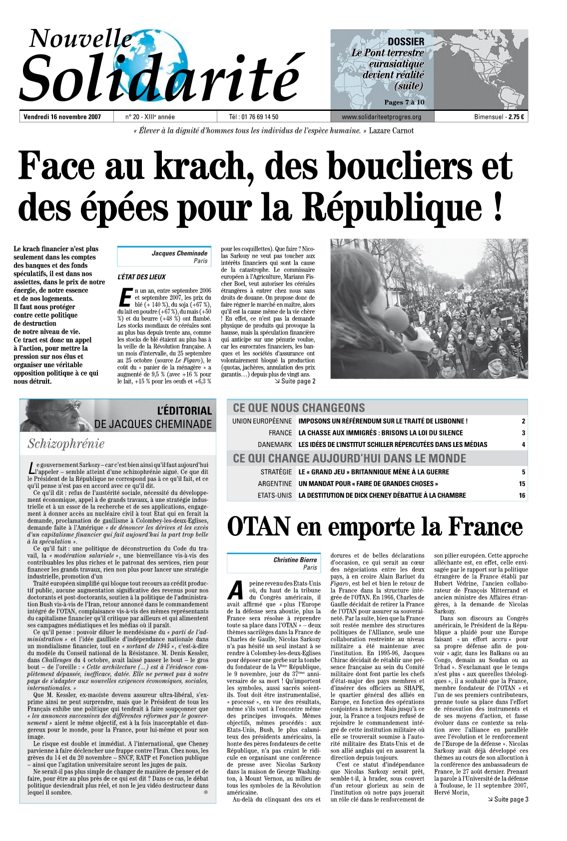 Accueil > Nouvelle Solidarité > Nouvelle Solidarité n°20/2007