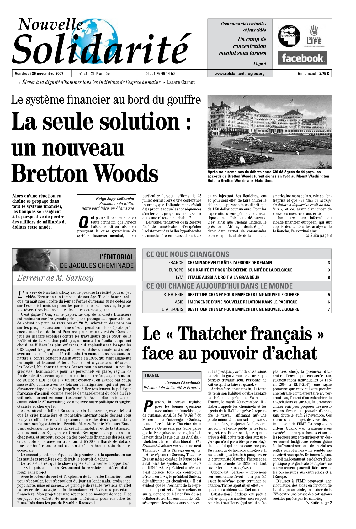 Accueil > Nouvelle Solidarité > Nouvelle Solidarité n°21/2007