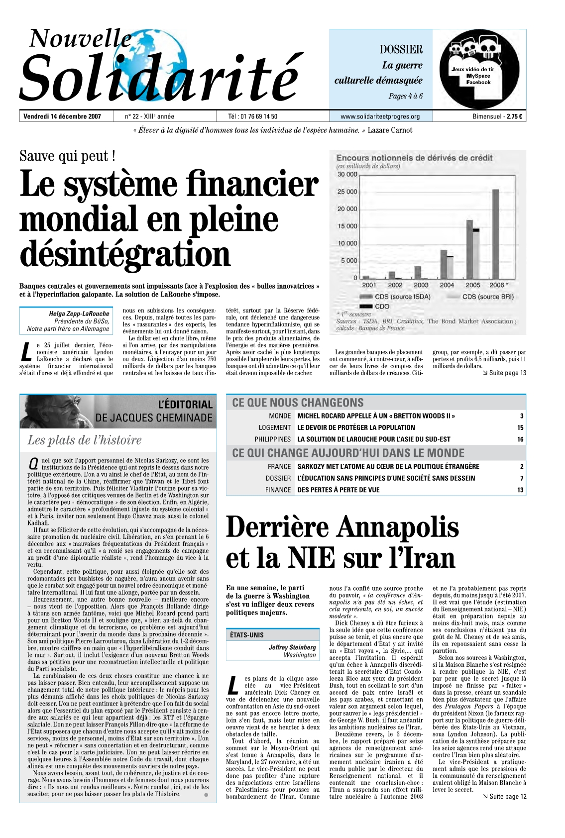 Accueil > Nouvelle Solidarité > Nouvelle Solidarité n°22/2007