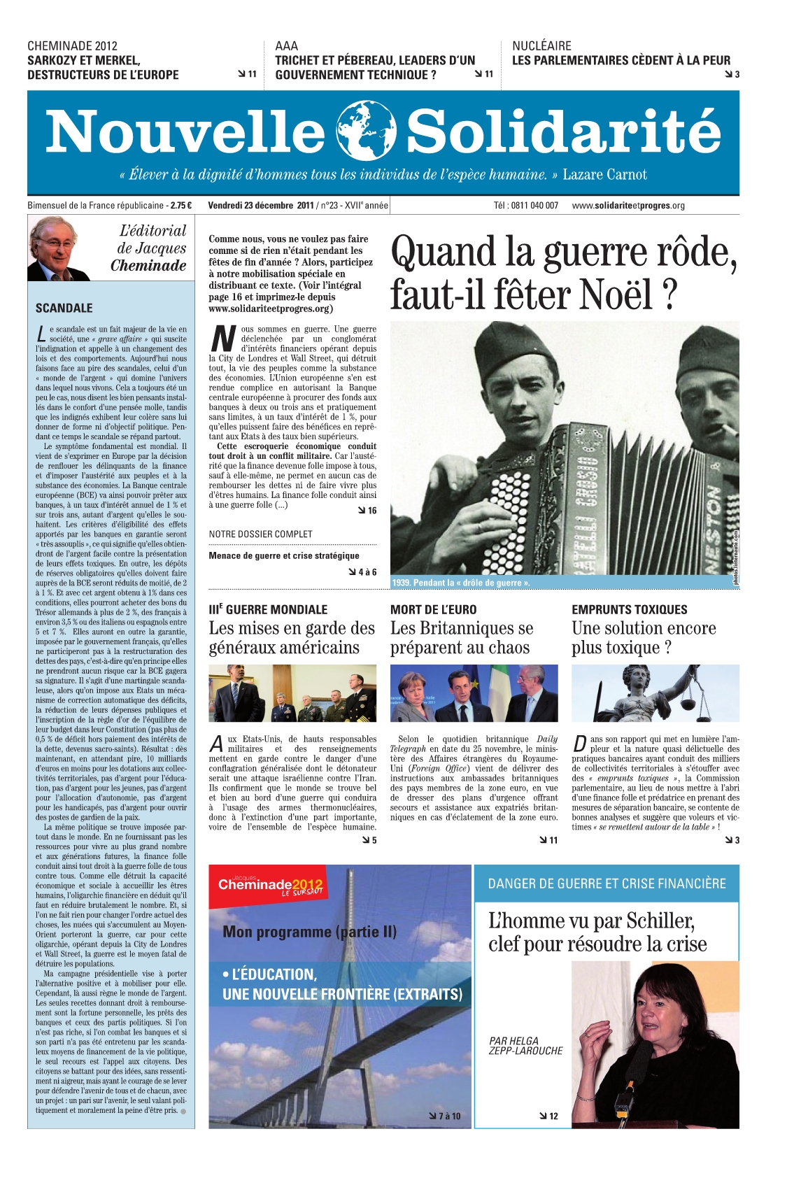 Accueil > Nouvelle Solidarité > Nouvelle Solidarité n°23/2011