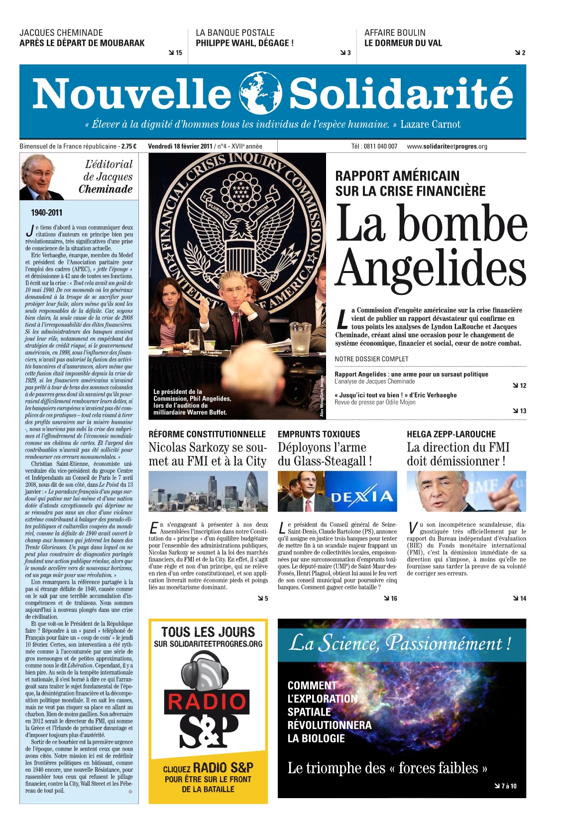Accueil > Nouvelle Solidarité > Nouvelle Solidarité n°4/2011