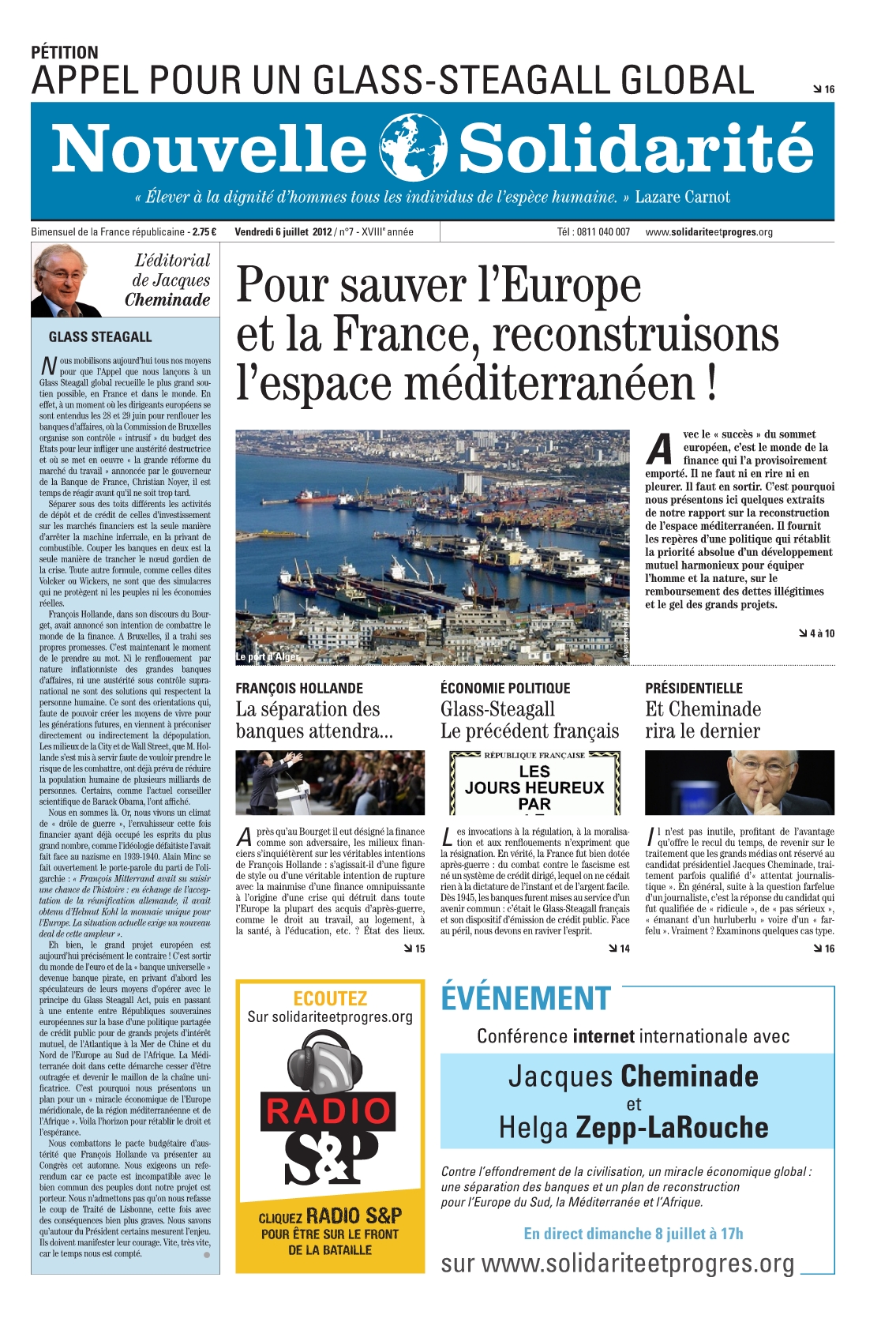 Accueil > Nouvelle Solidarité > Nouvelle Solidarité n°7/2012