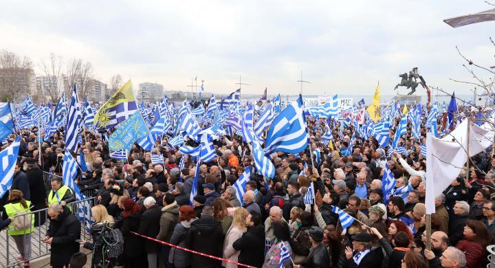 Sur une pancarte de protestation, on peut lire : « Nos aéroports sont entre des mains allemandes ; nos ports entre des mains chinoises ; nos trains entre des mains italiennes ; notre eau entre des mains françaises ; et tout le reste entre les mains de spéculateurs locaux ». Pourtant, ce peuple humilié et bafoué dans sa fierté et sa civilisation a encore aujourd’hui le courage de sortir dans les rues pour défendre un MOT : pour crier que le terme « Macédoine » appartient à la Grèce car, après lui avoir volé ses droits, son travail, sa production, ses retraites, ses maisons, après avoir poussé ses jeunes diplômés à l’émigration massive, on demande au peuple grec aujourd’hui de signer sa dépossession culturelle et historique en cédant le mot « Macédoine » à l’Etat de Skopje, ce fragment de l’ex-Yougoslavie qui s’étend au nord de la frontière grecque et qui, de surcroît, est limitrophe à la région grecque du même nom.