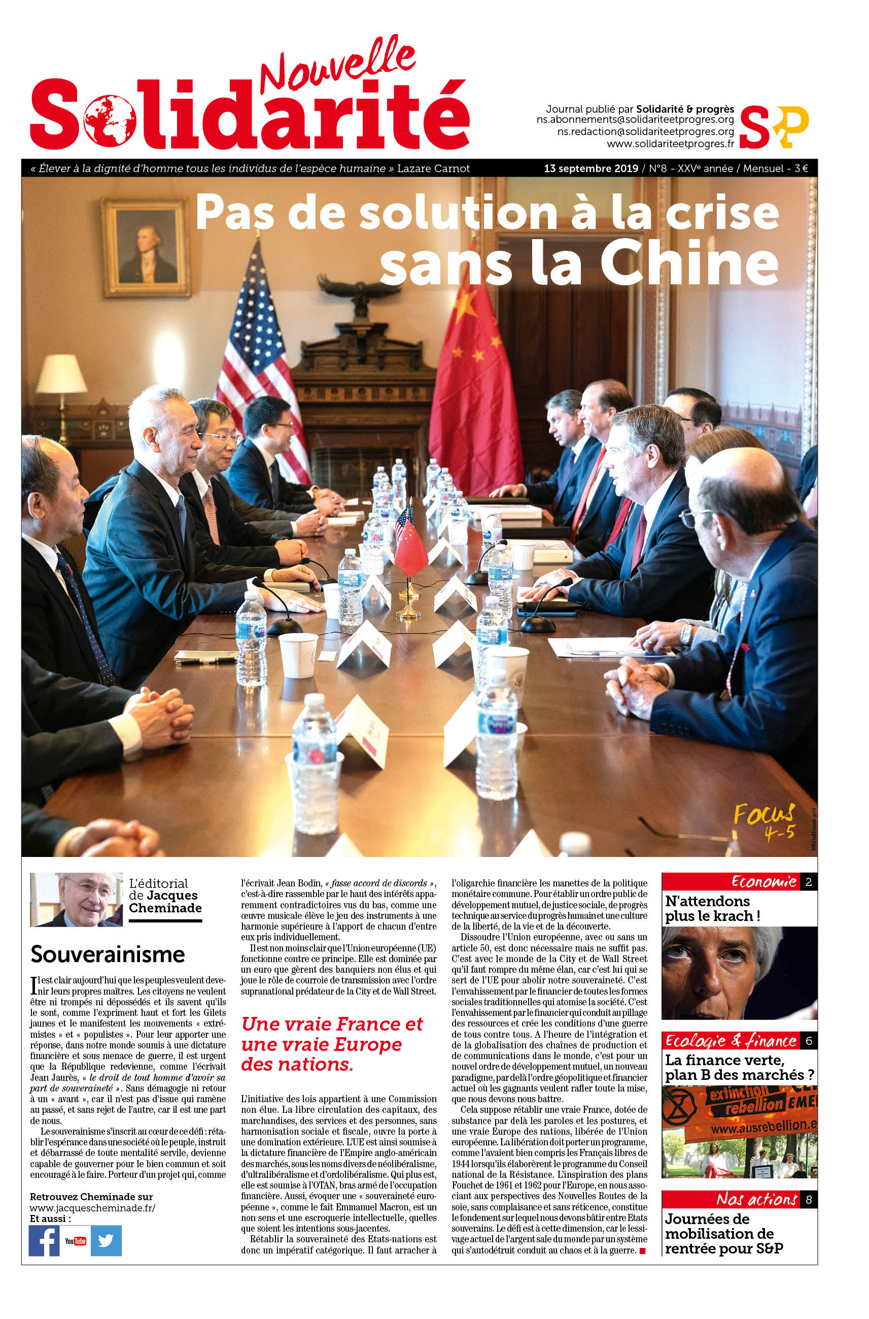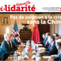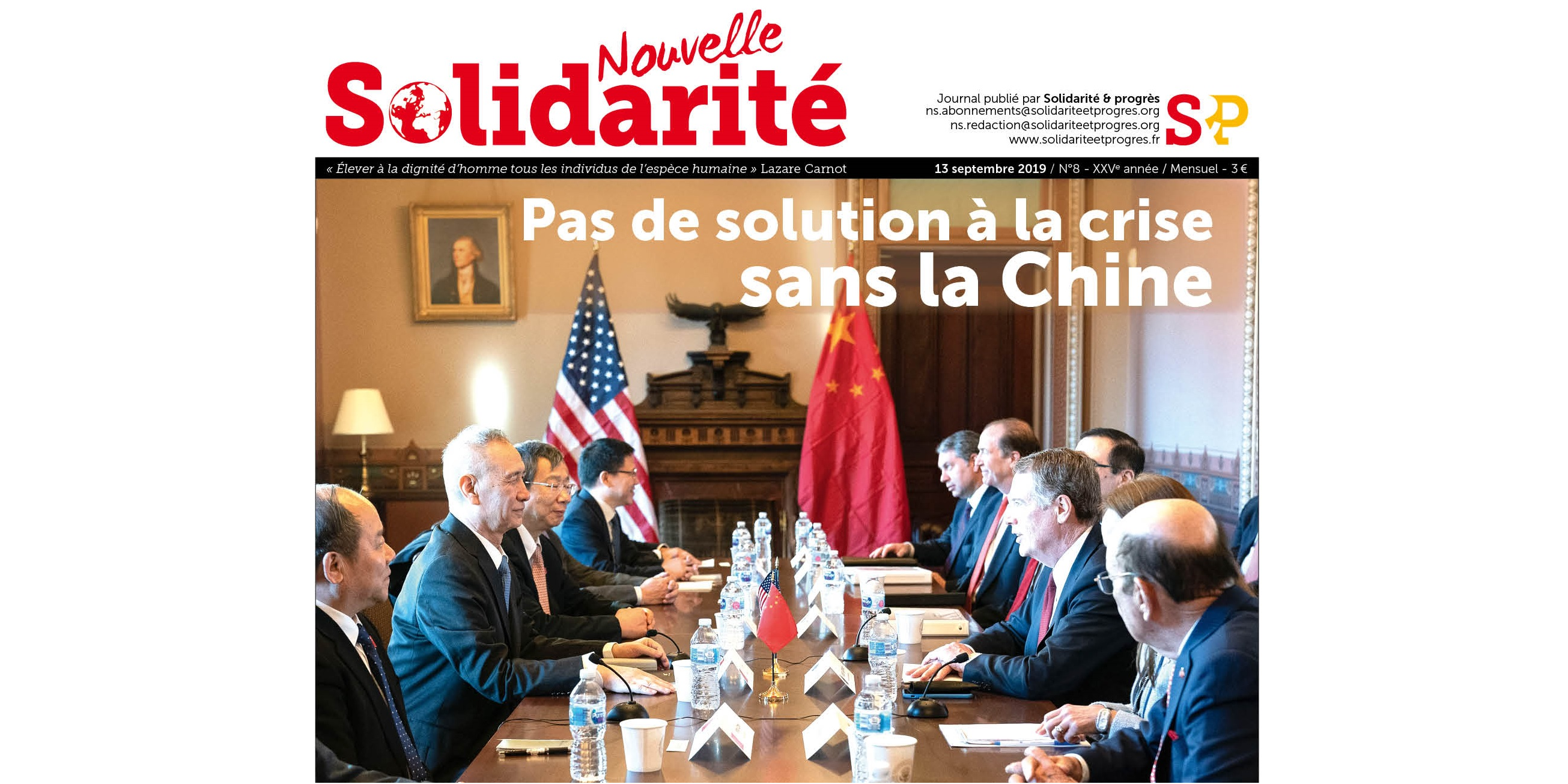 Par Christine Bierre. (p. 4-5)LE MONDE a besoin d’une coopération sino-américaine. L’OCDE l’a confirmé le 1er septembre : les exportations des pays du G20 ont reculé de 2,9 % et leurs importations de 3 % entre le premier et le deuxième trimestre 2019. Les Etats-Unis accusent une baisse de 2,9 % et l’Allemagne, dont la moitié du PIB dépend de ses exportations, les voit chuter de 6,6 % !