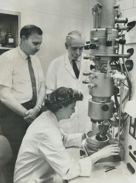 Grâce à la microscopie électronique, June Almeida visualise les virus de la rubéole et de l’hépatite B, entre autres, et contribue à la visualisation du VIH.