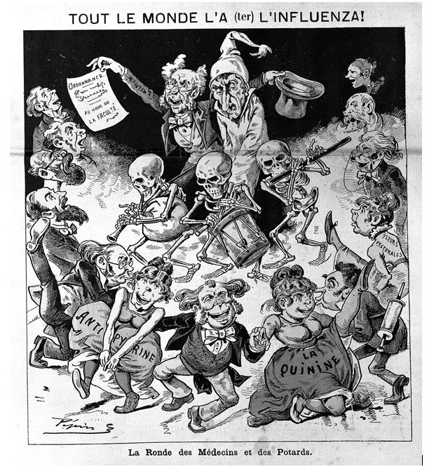 Pour cette dernière, dès décembre 1889, les médecins font face à des ruptures de stock et ne peuvent plus soigner leurs patients atteints de paludisme, sans pour autant que ce traitement stoppe l’évolution de la pandémie qui sévira jusqu’en 1895, touchant chaque pays de la planète.