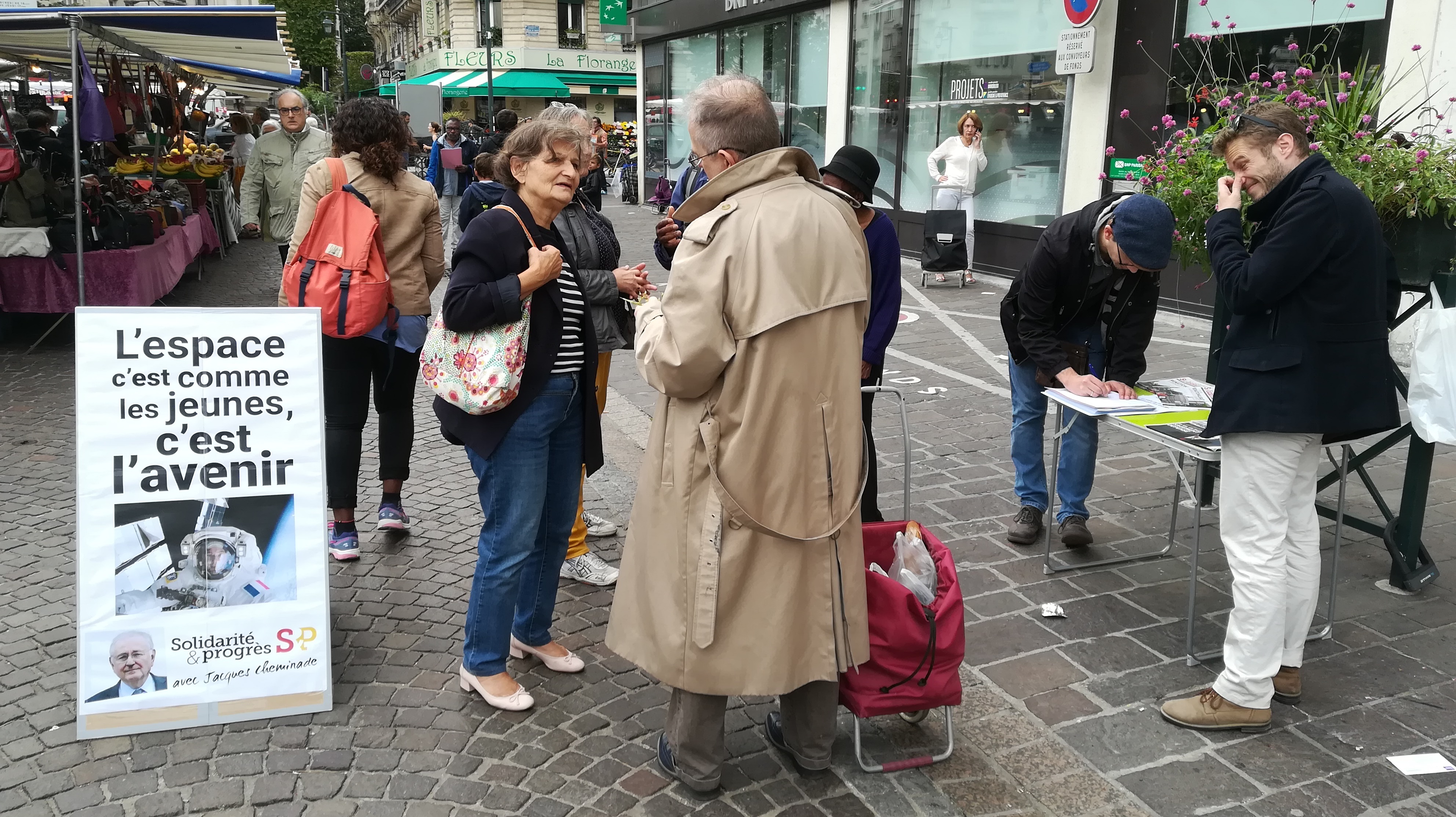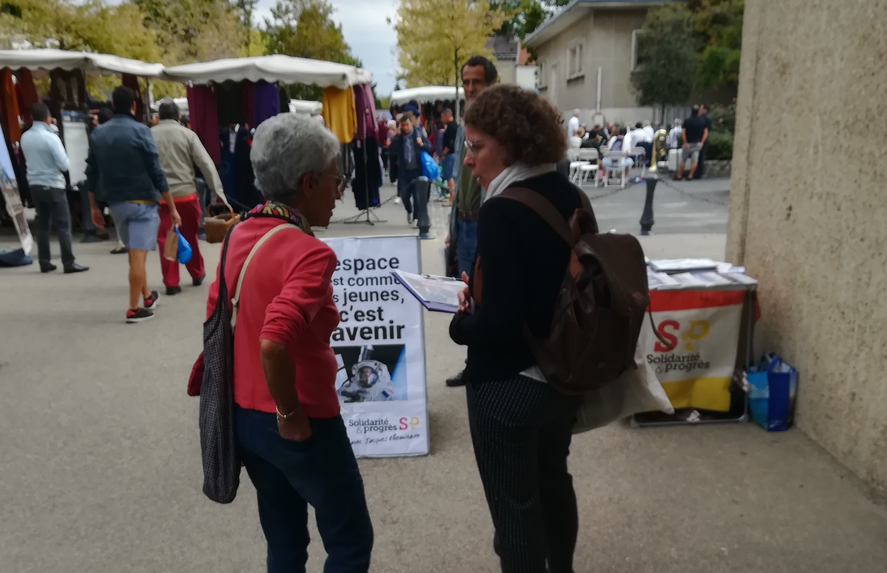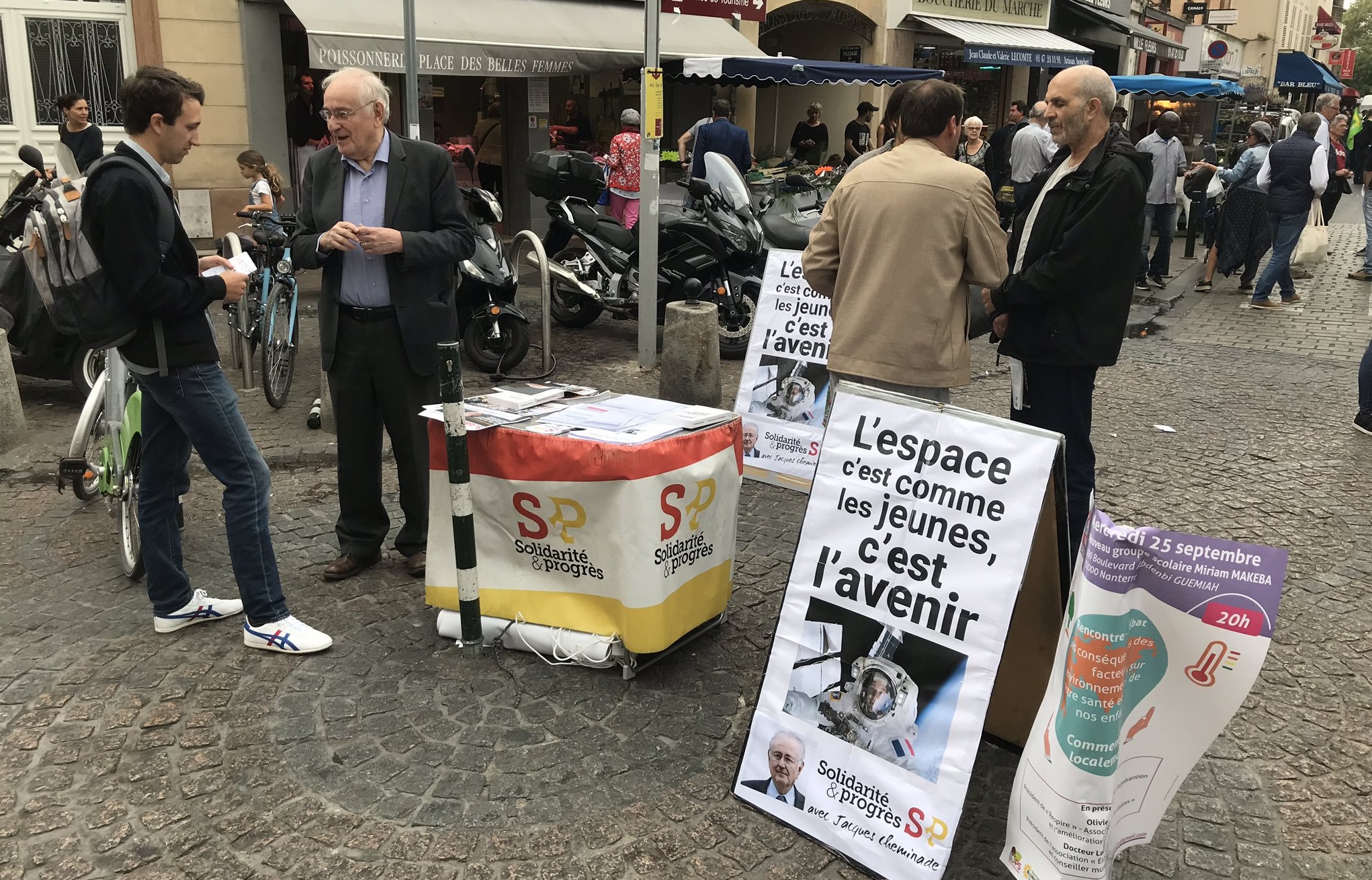 Le 22 sept., dimanche matin, une dizaine d’équipes de militants sont allées prendre à rebrousse-poil le pessimisme ambiant (Greta Thunberg à l’ONU, casse sociale, etc.) apportant l’optimisme contagieux de l’exploration spatiale, de l’avenir et des jeunes, et la bataille économique et financière à mener aujourd’hui si l’ont veut sortir de la casse sociale et se libérer de l’occupation financière.