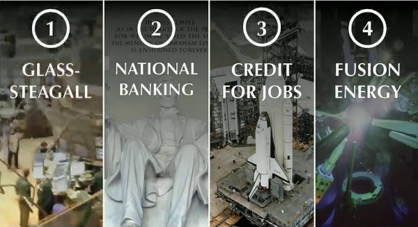 Depuis l’élection de Donald Trump, les LaRouche mobilisent leurs troupes auprès des élus républicains et démocrates, non seulement pour le rétablissement de la loi Glass-Steagall, mais pour un engagement en faveur de quatre principes cardinaux, sans lesquels les États-Unis ne pourront pas mettre fin à leur déclin ni moderniser leurs infrastructures.