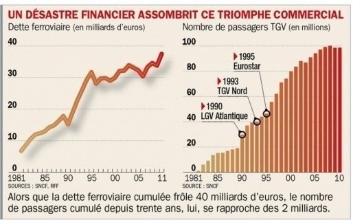 L’emballement de la dette de la SNCF découle de la loi du 1er janvier 1973 (Giscard-Pompidou) qui, équation impossible, oblige la SNCF à solliciter du crédit auprès des banques privées pour financer ses investissements lourds et à rentabilité longue sur les lignes TGV qu’elle vient de lancer. Grâce à la magie comptable, en transférant cette dette sur RFF, Alain Juppé évite que ces milliards n’apparaissent comme de la dette publique.
