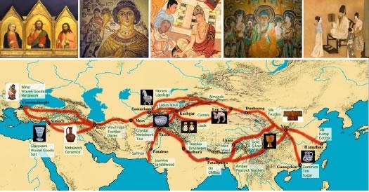 Le phénomène fut d’importance, au point que Pline l’Ancien s’étende sur la soie et ses origines dans son Histoire Naturelle. Le missionnaire chinois Gan Ying, d’un autre côté, écrivit ce qu’il apprit de Rome au cours de ses voyages, relatant entre autres la forme républicaine de gouvernement de l’époque. Malgré les énormes distances, il y avait déjà un échange d’idées entre l’Orient et l’Occident, et parmi les voyageurs sur de longues distances vers l’Orient, le plus connu de la dynastie Yuan fut Marco Polo.