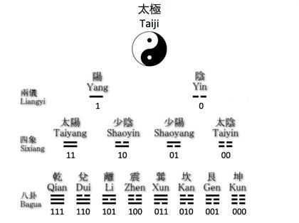 Les mathématiques du système binaire furent développées par Gottfried Leibniz, un philosophe et mathématicien allemand de la fin du 17e siècle. Bien que Leibniz ait travaillé quelque temps sur le système binaire, une percée dans son travail lui fut offerte par la Chine, après qu’il eut prit connaissance du Yi Jing grâce en particulier au travail de Shao Yong (1011-1077 ap. J.-C.).