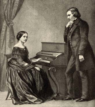 Au cours des deux premières semaines qu’il passa à Leipzig, Félix entendit jouer Bach dans la célèbre Thomaskirche et il interpréta une fugue de Bach pour le seizième anniversaire de Clara Wieck. Suite à cela, il s’amusa à imiter les mimiques de Liszt et de Chopin au clavier. [34] L’alliance entre les Mendelssohn et les Schumann était née. Elle ne s’interrompit que douze ans plus tard, à la mort prématurée de Félix.
