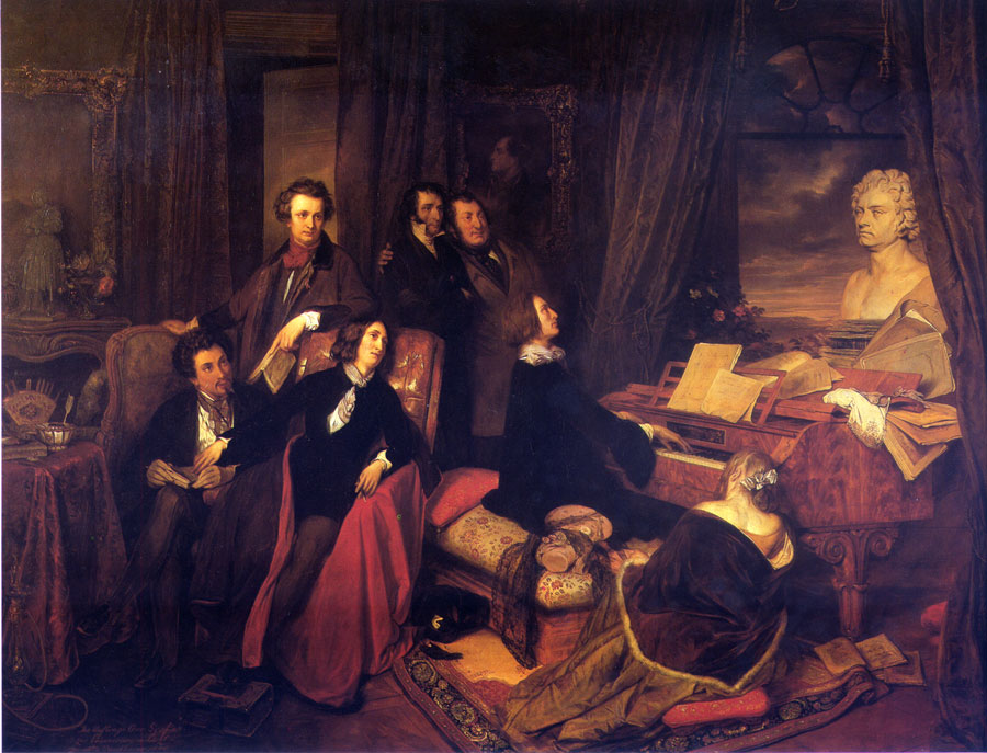 A la fin de l’année 1833, de nombreux musiciens, jeunes pour la plupart, se retrouvaient à Leipzig tous les soirs, apparemment par hasard au début, pour élargir leur réseau mais pas moins pour échanger leurs idées sur cet art qui était toute leur nourriture : la musique. On ne peut pas dire que la musique était alors en Allemagne dans un état très réjouissant. Rossini régnait sur toute l’Allemagne, Herz et Huenten étaient seuls maîtres à bord parmi les pianistes et plusieurs années s’étaient déjà écoulées depuis que Beethoven, C.M. von Weber et Franz Schubert nous avaient quittés. Il y avait bien sûr Mendelssohn, l’étoile montante ; on entendait des choses merveilleuses à propos d’un polonais dénommé Chopin, mais cela n’allait avoir véritablement d’influence que bien plus tard. Un jour, le jeune Schumann irrité se mit à penser : ‘À quoi bon regarder tout ça paresseusement ? Établissons-nous et rendons les choses meilleures ! Rendons à la poésie de l’art ses anciens honneurs’. Et voici d’où jaillirent les premières pages d’un nouveau journal de musique. [31]