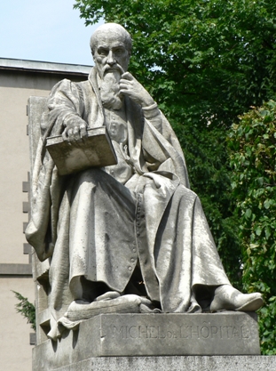 On cite d’habitude, comme référence au « domaine public », l’édit de Moulins, promulgué par Charles IX en 1566. C’est l’édit pour la paix des religions, rédigé par Michel de l’Hospital (1506-1573). Ce dernier se situait dans le parti qu’on appelait à l’époque « le parti des Politiques », qui n’était ni protestant ni catholique, mais qui situait l’intérêt de la nation par-delà : une France définie par un engagement dans l’avenir, donnant à tous les moyens d’un futur, une France qui devait nécessairement se placer par-delà les confessions religieuses.