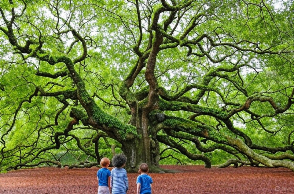 Mais il y a trois enfants qui le regardent. Que voyez-vous ? (…) Ils peuvent y grimper. Graver un dessin sur l’écorce. Y faire une cabane. C’est invisible mais ça peut exister, et à y réfléchir, ça existe déjà.