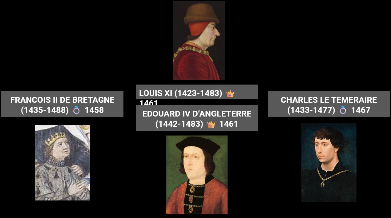 Pour faire court, cinq ans après son couronnement, Louis fait face à un soulèvement des seigneurs, son frère compris : la Ligue du Bien public, couvrant leurs visées personnelles par la soi-disant défense de la noblesse, de l’église et des pauvres, contre les taxes qui ruineraient le pays.