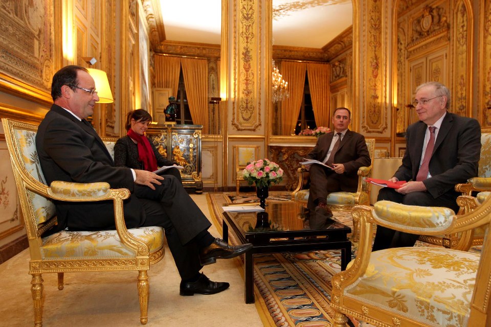 Paris, le 8 décembre 2012 – Hier au Palais de l’Elysée, le Président de la République a reçu Jacques Cheminade pour le consulter sur ses propositions concernant la réforme de la vie politique. Les deux hommes ont aussi évoqué brièvement l’enjeu de la réforme bancaire qui sera présentée en Conseil des ministres le 19 décembre.