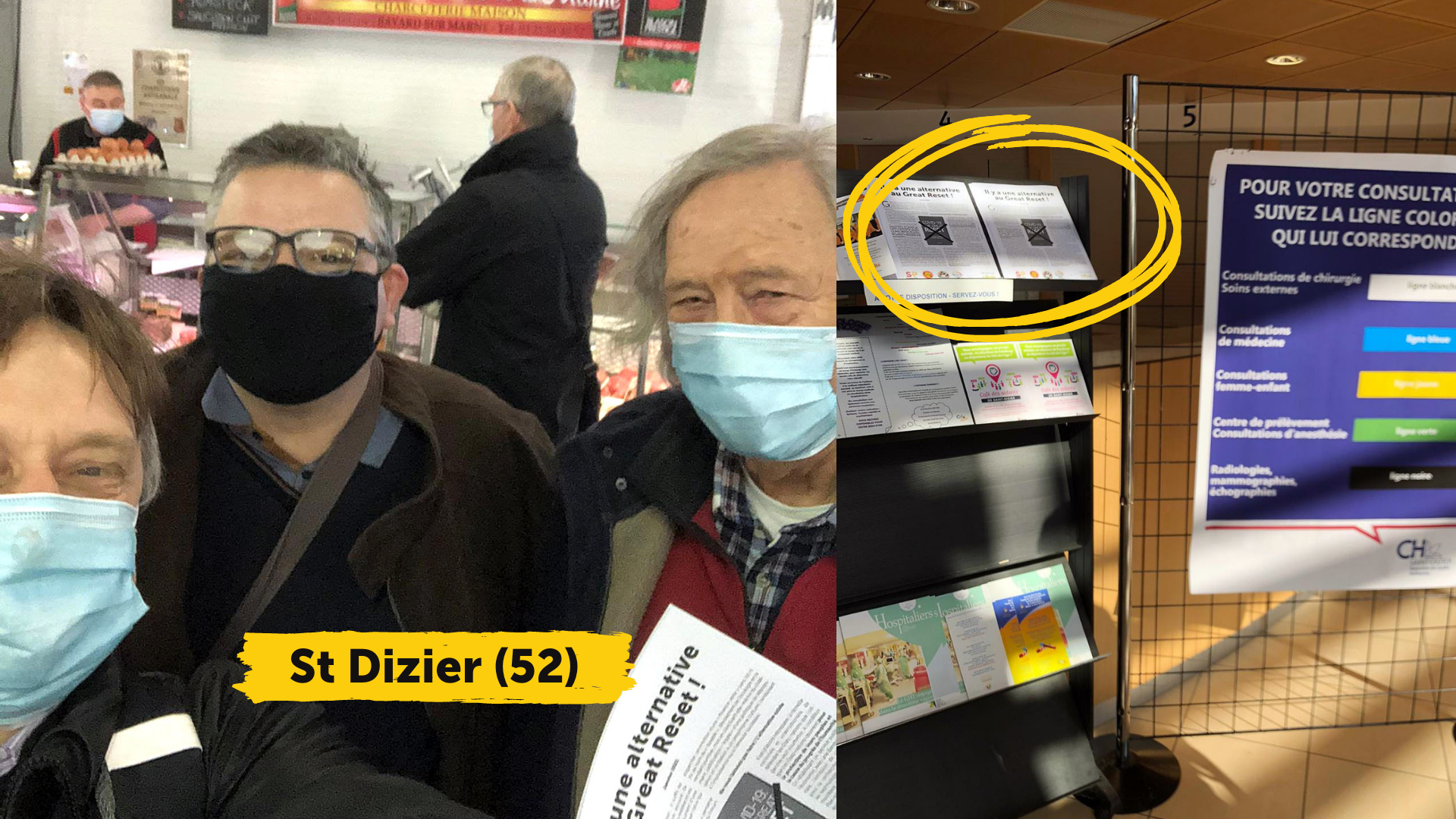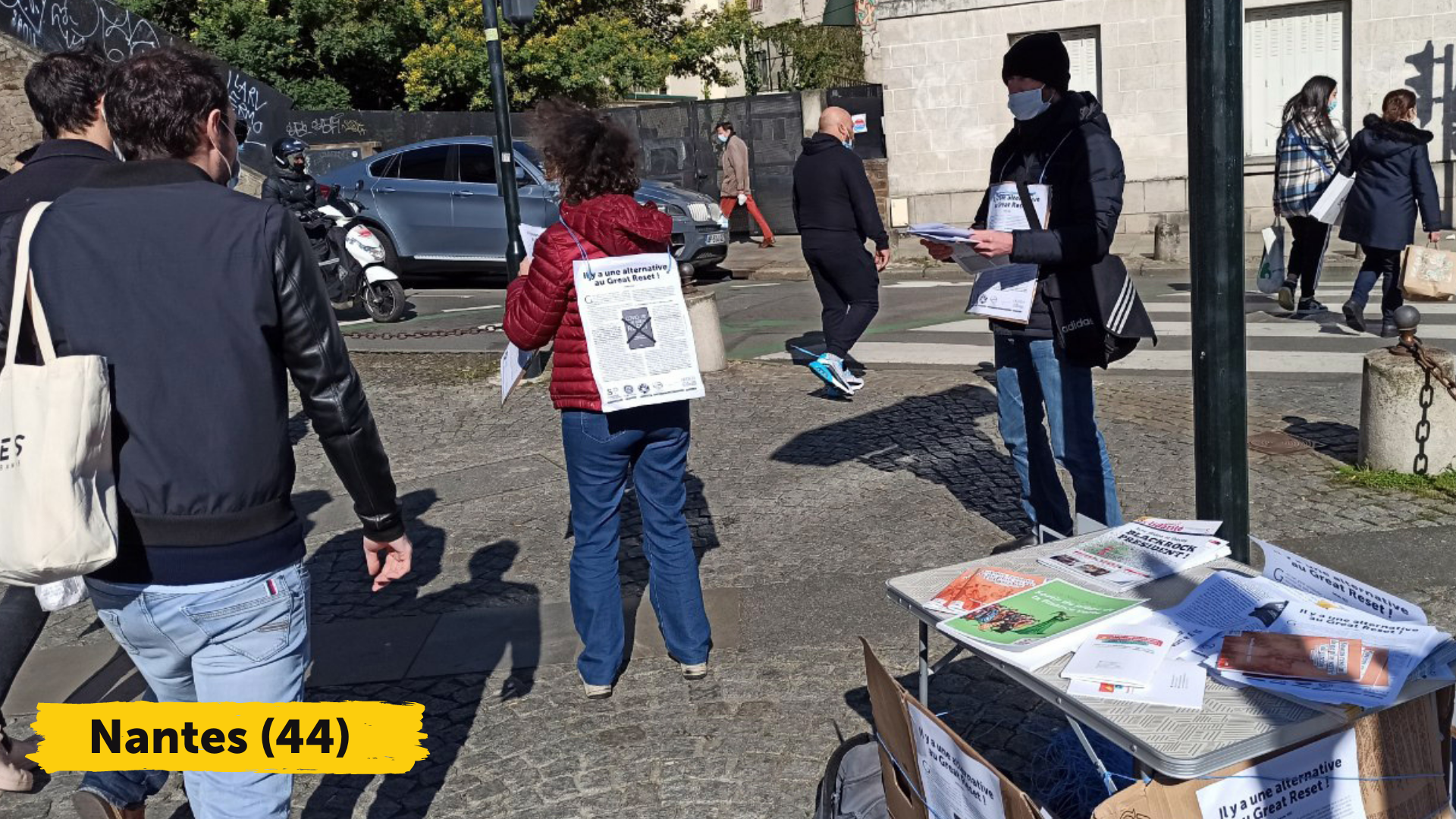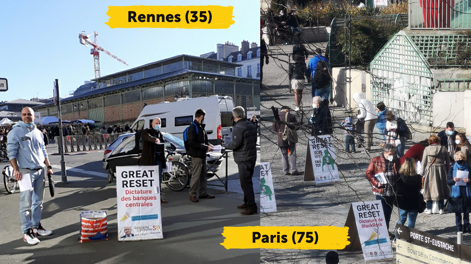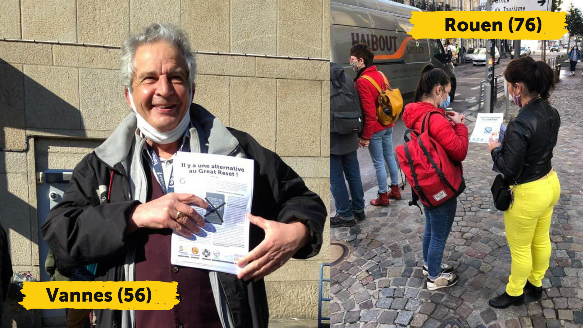 Samedi 27 février, S&P et plusieurs collectifs citoyens indépendants [1] ont lancé une mobilisation commune contre le Great Reset. Ainsi, dans une trentaine de villes en France, des équipes se sont montées — ou, parfois, un courageux militant s’est déplacé en solo — pour distribuer le tract Il y a une alternative au Great Reset ! et engager la discussion avec les passants.