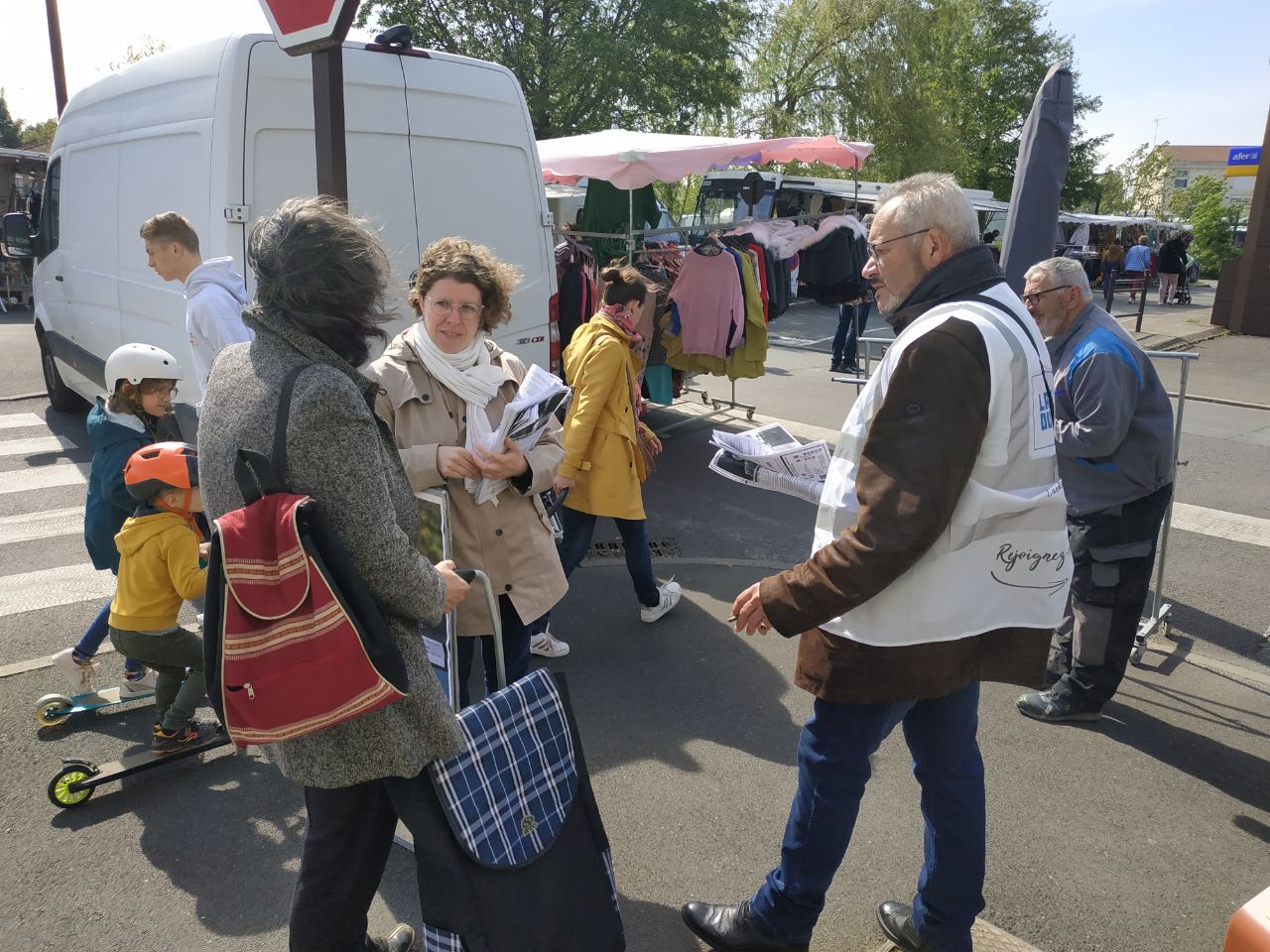 Durant toute la semaine, nous parcourons les contrées vendéennes, écumons les marchés de Mortagne-sur-Sèvre, des Herbiers, Chantonnay, Moutiers-les-Mauxfaits, la Roche-Sur-Yon. A Saint-Laurent-sur-Sèvre où notre candidate Virginie Fouquet tient son salon de coiffure, beaucoup de ses clientes et clients la reconnaissent et l’encouragent à continuer le combat. L’une d’entre elles s’empare même de plusieurs tracts et promet de les distribuer dans sa rue en assurant qu’elle et toute sa famille voteront pour Virginie. « C’est toi ma candidate ! » lui assure-t-elle.