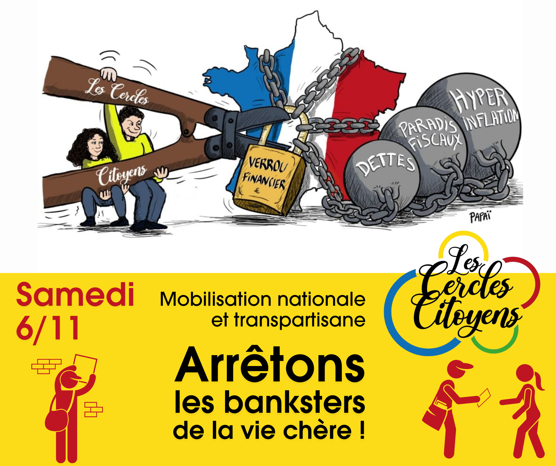 Les #CerclesCitoyens avec S&P organisent une nouvelle journée d’action nationale et transpartisane, le samedi 6 novembre. L’objectif : mobiliser la population contre le règne des « banksters » qui pillent l’économie réelle et nous imposent la vie chère.