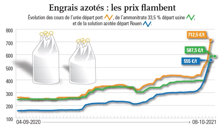 Quant aux engrais, dont le prix a doublé et même triplé aux États-Unis et en Europe, leur production est suspendue. [1]