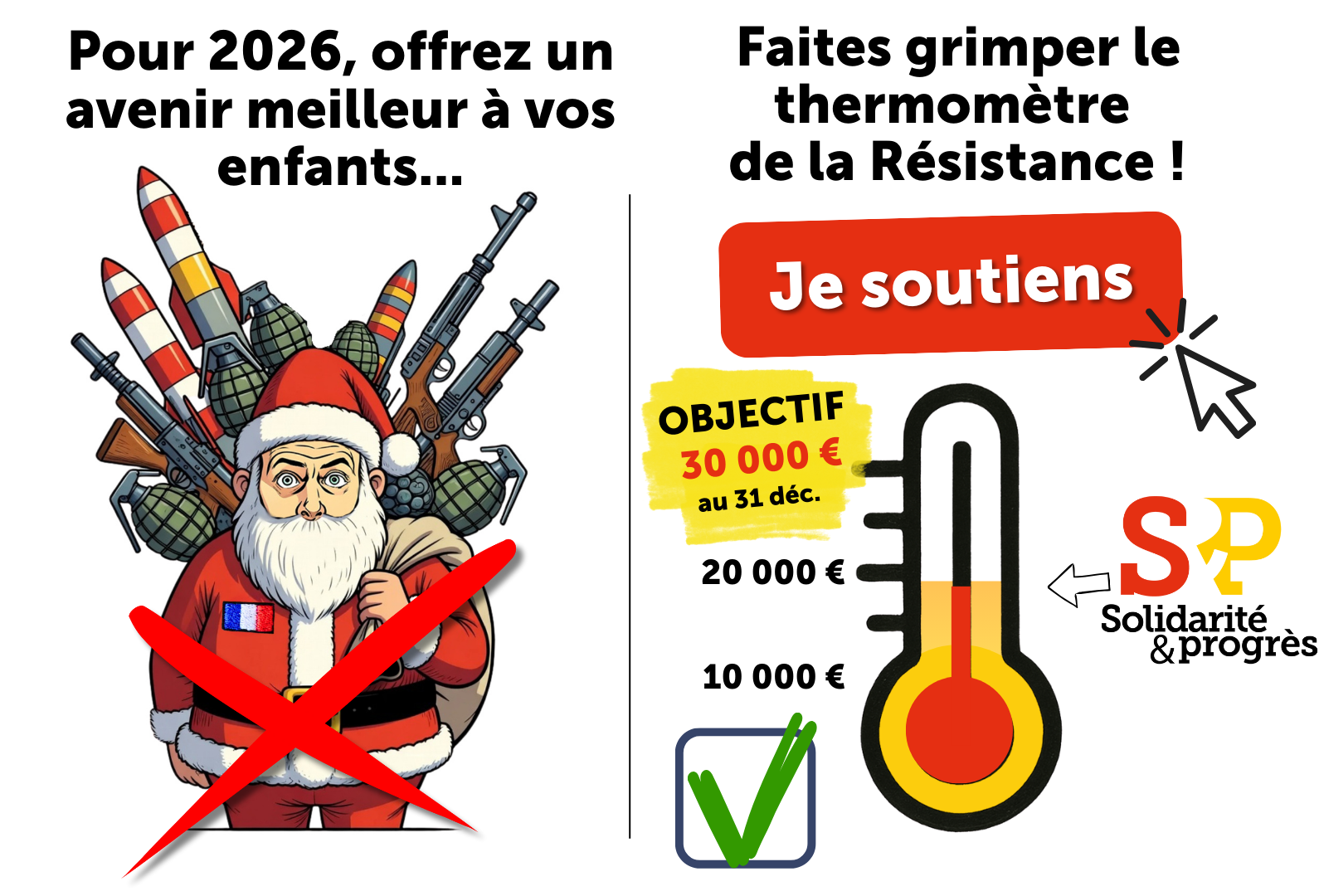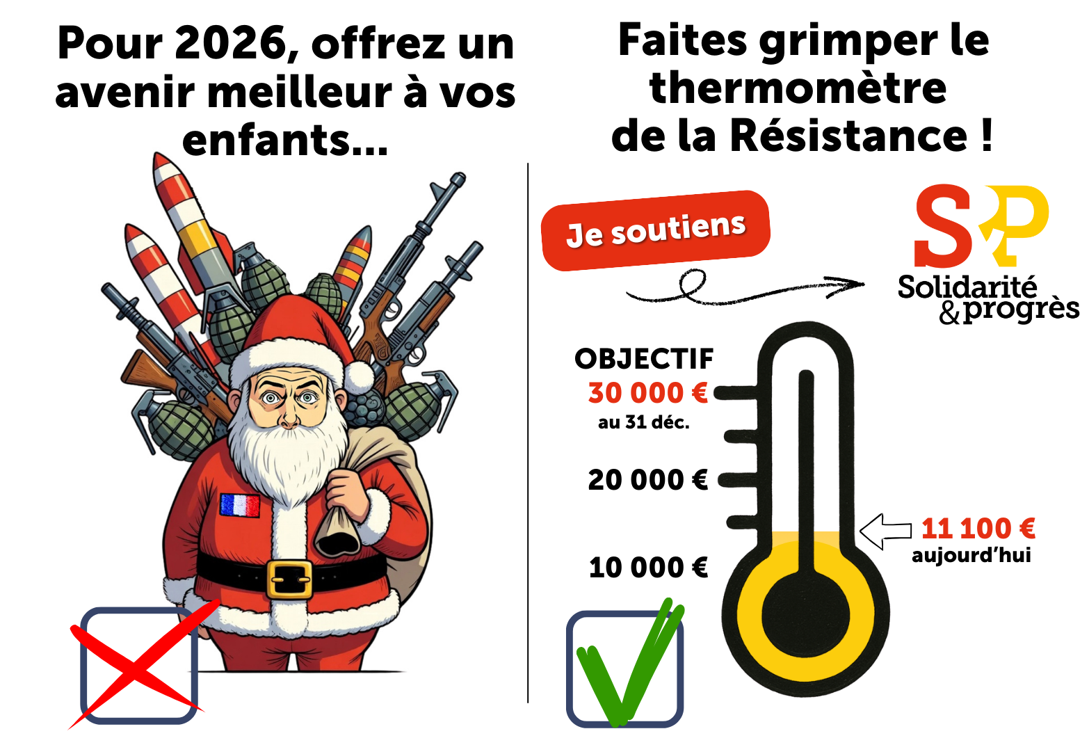Comme vous le savez, contrairement aux partis en place, Solidarité & Progrès est exclusivement financé par les citoyens. Grâce à vos dons, nous pourrons dès maintenant préparer nos actions pour les mois à venir. A savoir, les prochaines réunions-dédicaces de Jacques Cheminade dans toute la France, ainsi que nos campagnes sur le terrain (législatives et autres). Ainsi que nos grandes conférences, dont la prochaine Assemblée générale du parti qui se tiendra en juin.