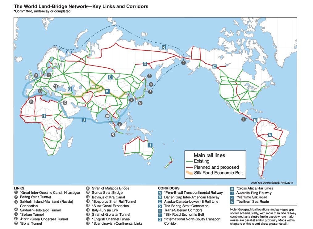 L’initiative de connectivité chinoise « Une ceinture, une route », qui porte la forte empreinte du Corridor terrestre eurasiatique – une ébauche conçue par l’Institut Schiller – devrait être suivie d’un Pont terrestre mondial reliant l’Amérique du Nord à la nouvelle Route de la Soie.