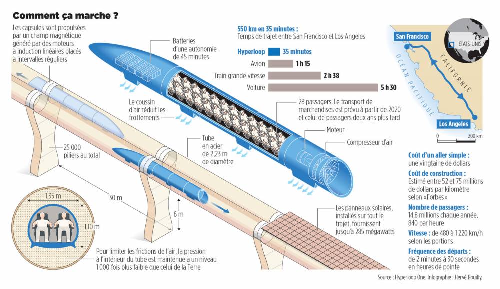 est, à mon avis, la bonne solution pour le cas spécifique de trafic dense entre deux villes séparées de moins de 1500 kilomètres ». Au-delà, l’avion supersonique (construit par Musk) fera mieux, car il « résout tous les problèmes de deux villes séparées par une grande distance, sans devoir créer un vaste réseau mondial d’infrastructures.