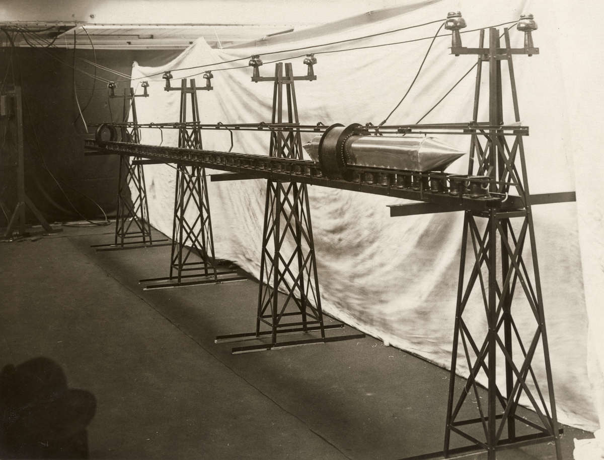 C’est en allant dans ce sens qu’en 1912, l’inventeur d’origine française Emile Bachelet, qui cherche à moderniser la poste pneumatique, fait breveter aux Etats-Unis son « appareil de transmission par lévitation », capable de « transférer à grande vitesse, d’un point à un autre, des charges, ce qui est particulièrement avantageux pour des petits colis sur des grandes distances ».