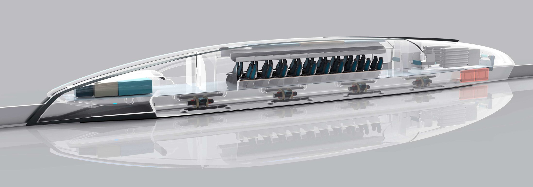 Soulevées par des coussins d’air sur skis pour réduire les frottements et propulsées par un champ électromagnétique à l’intérieur de tubes sous vide, les capsules seraient théoriquement capables d’atteindre la vitesse vertigineuse de 1102 km/h, soit un peu moins que la vitesse du son.