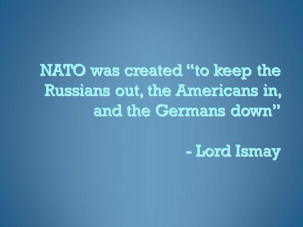 Mais le premier Secrétaire général de l’OTAN, lord Hastings Lionel Ismay (1952-1957), expliquait que l’OTAN avait été créée « to keep America in Europe, Russia out and Germany down ». En 70 ans, rien n’a donc changé.