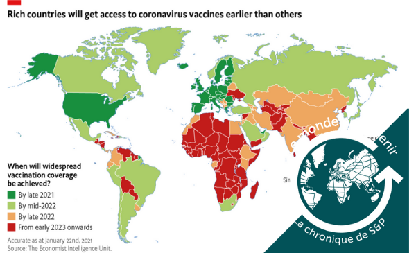 En effet, malgré le système Covax créé par l’OMS, qui a permis à ce jour de distribuer 36 millions de doses dans 86 pays, sur les 680 millions de doses administrées au total dans le monde, 0,1% seulement concernent les pays à « faible revenu », tandis que les pays à « revenu élevé » (16% de la population mondiale) concentrent la moitié des doses injectées (56%), les Etats-Unis ayant injecté à eux seuls un quart du total (qui a dit que le « America First » de Trump était fini ?).