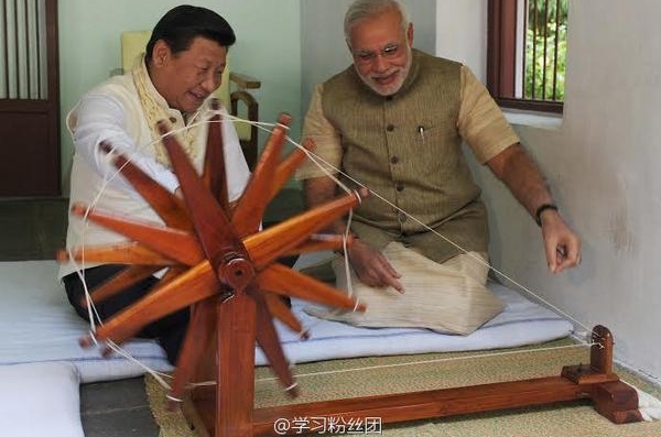 Cependant, l’Image 2 montre qu’il existe de part et d’autre une volonté très forte de réconciliation. Ici, l’on voit Modi recevant le Président chinois Xi Jinping dans la maison de Gandhi, devant un charkha (rouet) et non dans un palais officiel comme le veut le protocole habituel. Le symbole est très fort pour plusieurs raisons. Tout d’abord parce que ce que l’histoire retient de Gandhi, c’est son combat pour réconcilier les peuples, les religions et les castes ; mais aussi parce que Modi est originaire du même État que Gandhi, le Gujarat, ce qui donne un caractère plus personnel à sa rencontre avec le Président chinois.