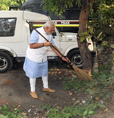 Encore un symbole très fort directement inspiré des campagnes de Gandhi : le Premier ministre de l’Inde s’est fait photographier balayant la rue comme on le voit sur l’Image 4.