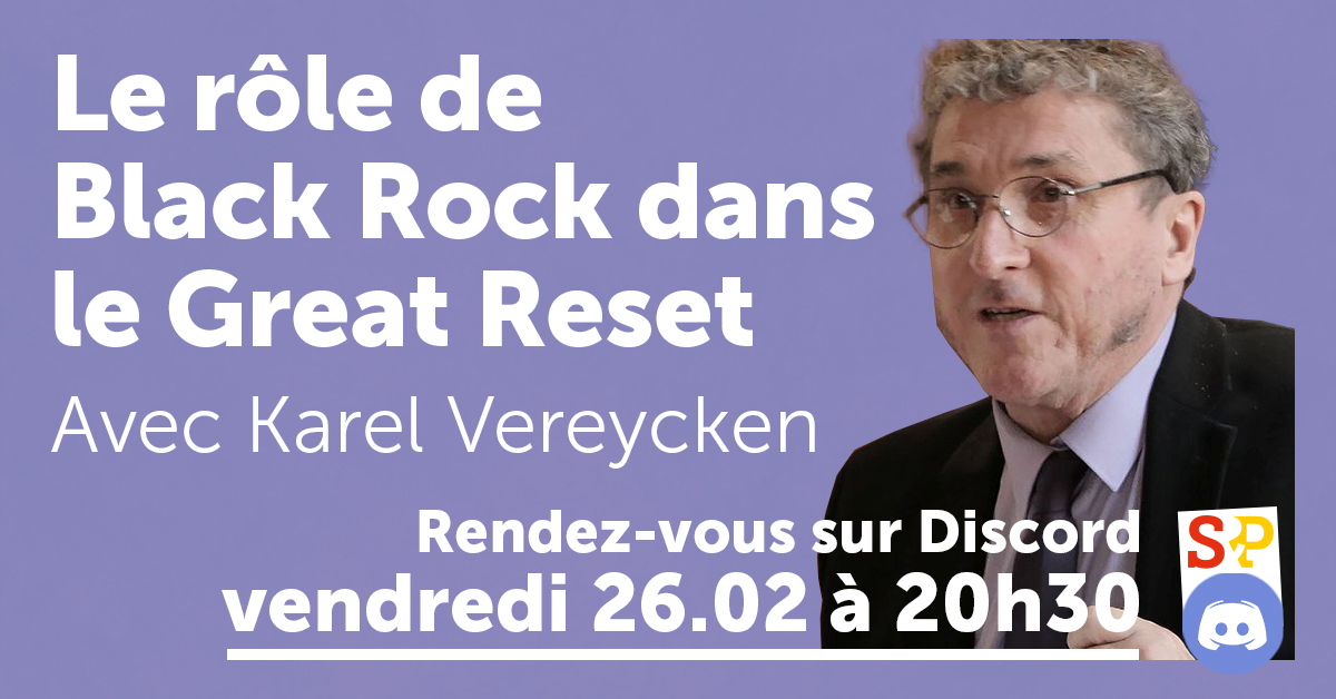 Vendredi à 20h30, on prépare la journée d’action pour l’alternative au Great Reset (samedi 27 février, plus d’info ici). On débattra du fonctionnement de BlackRock, de son pouvoir et de son rôle dans le Great Reset. Et on discutera de comment alerter nos concitoyens et construire la force de résistance nécessaire.