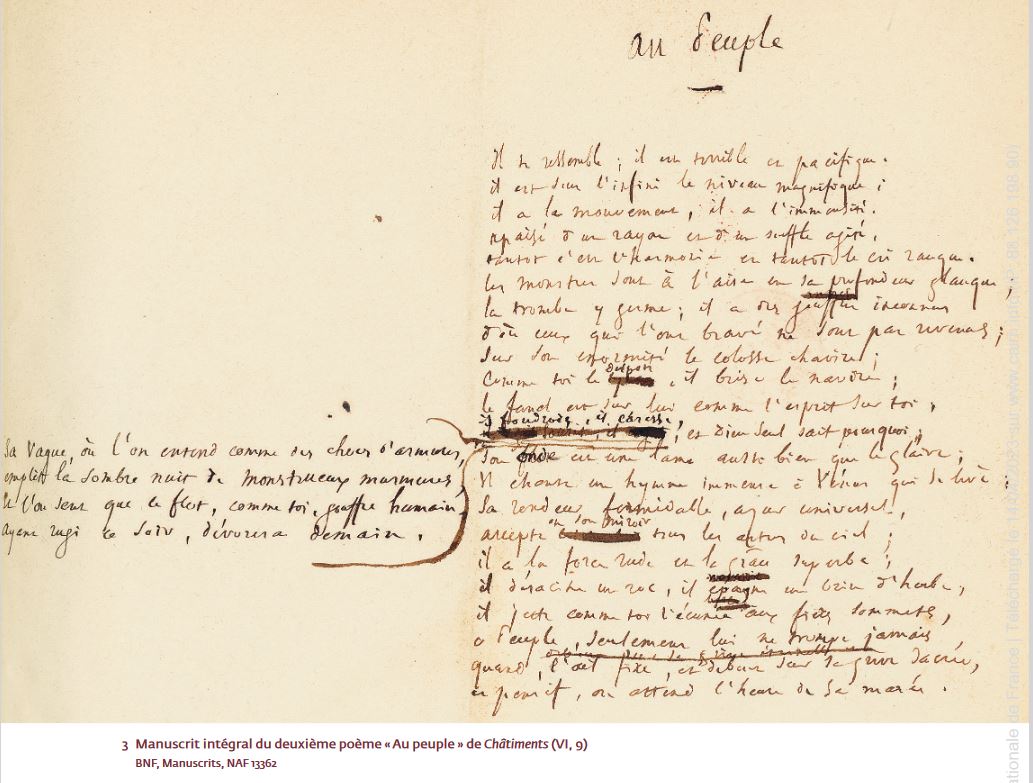 Dans son poème Au peuple (Les Châtiments, Livre VI), il utilise la puissante métaphore de l’Océan pour caractériser cette force. En l’évoquant, Hugo s’adresse au peuple :
