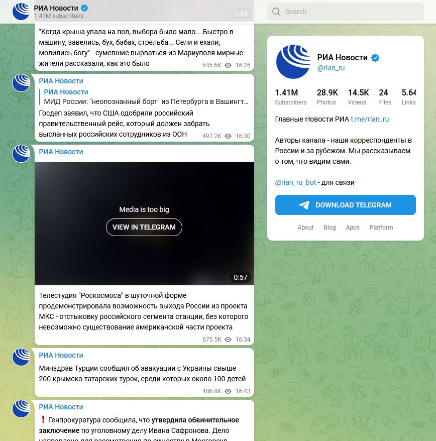 Adossé à la légende « Le studio de télévision de Roscosmos a démontré en plaisantant la possibilité que la Russie se retire du projet ISS - le désamarrage du segment russe de la station, sans lequel la partie américaine du projet ne peut exister », le clip a été vu 650 000 fois et a été massivement partagé.