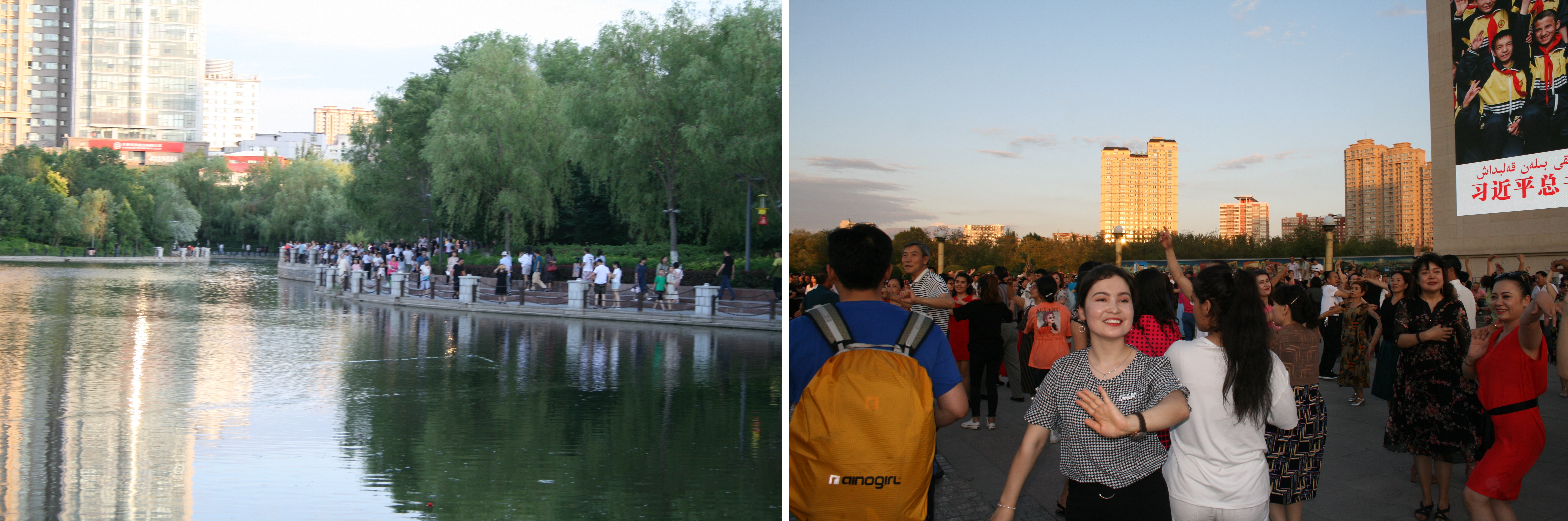 Nous avons aussi visité le Musée ainsi que des zones passantes, où l’on a constaté la disparition de nombreux postes des contrôles de police présents dans toute la ville il y a encore un an. Nous nous sommes ensuite baladés dans son parc central très grand doté d’un lac artificiel en son centre, où 10 000 personnes s’amusaient au tomber de l’après midi. Des groupes spontanés d’une vingtaine de personnes se formaient pour danser au rythme des différentes musiques, alors que d’autres s’entrainaient au taïchi (23) (24). Les forces de sécurité ont du y être présentes mais très peu visibles. Tout comme au Grand Bazar International où nous avons pu nous balader le dimanche et faire, comme beaucoup d’autres, joyeusement nos emplettes.(25)