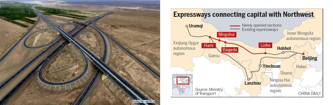 Après Beijing, nous partons vers deux des provinces les plus pauvres en Chine aujourd’hui, le Gansu et le Xinjiang, bien qu’elles remontent la pente rapidement grâce au développement des infrastructures routières et ferroviaires modernes, dont l’autoroute reliant Beijing à Urumqi (4-5) ouverte en 2017 et le TGV Lanzhou-Urumqi,nous expliquent les représentants des Académies d’études en sciences sociales de ces régions. Ces deux provinces ont joué un rôle clé dans les anciennes Routes de la soie, et sont totalement stratégiques au succès de l’ICR aujourd’hui.